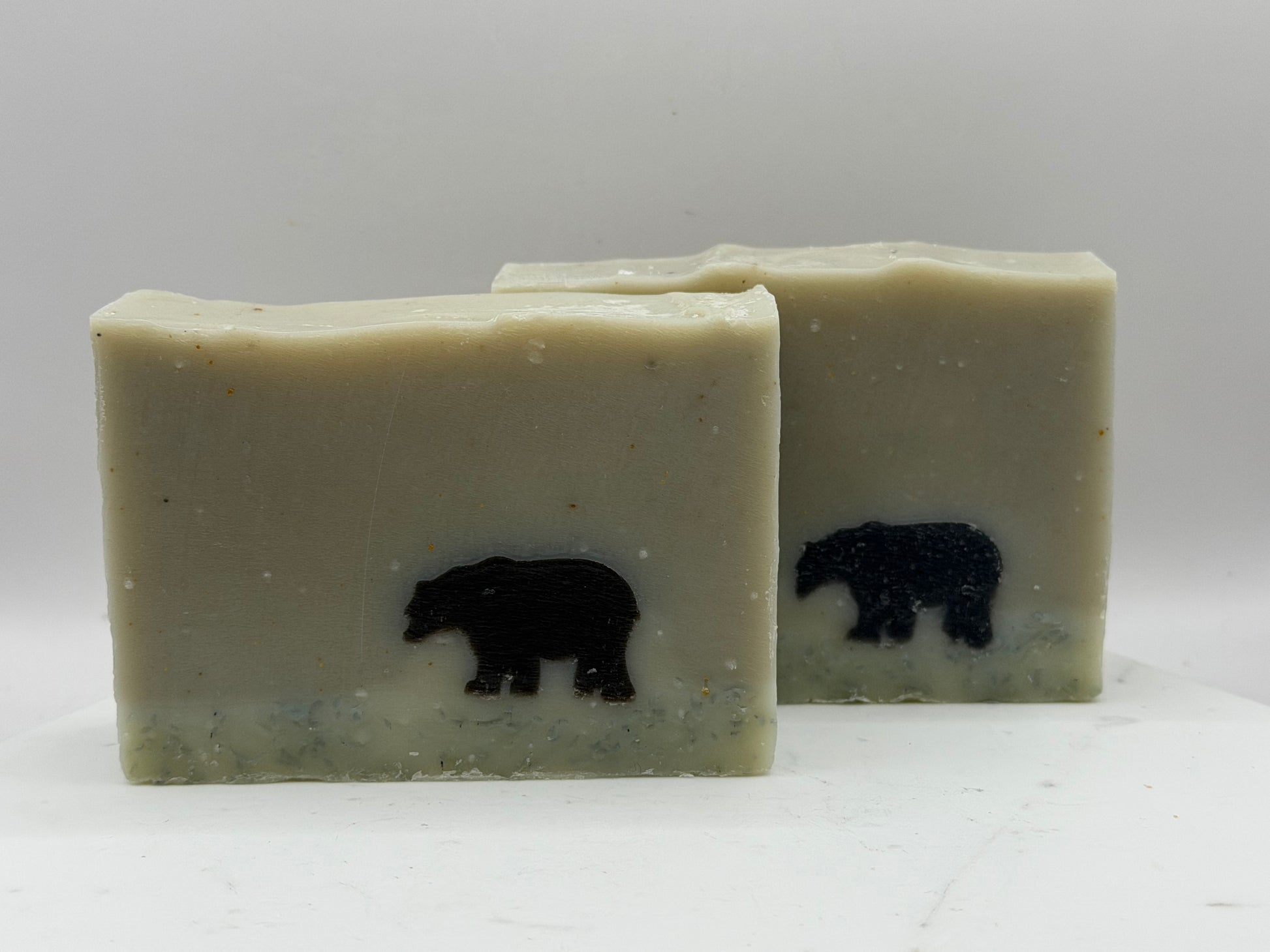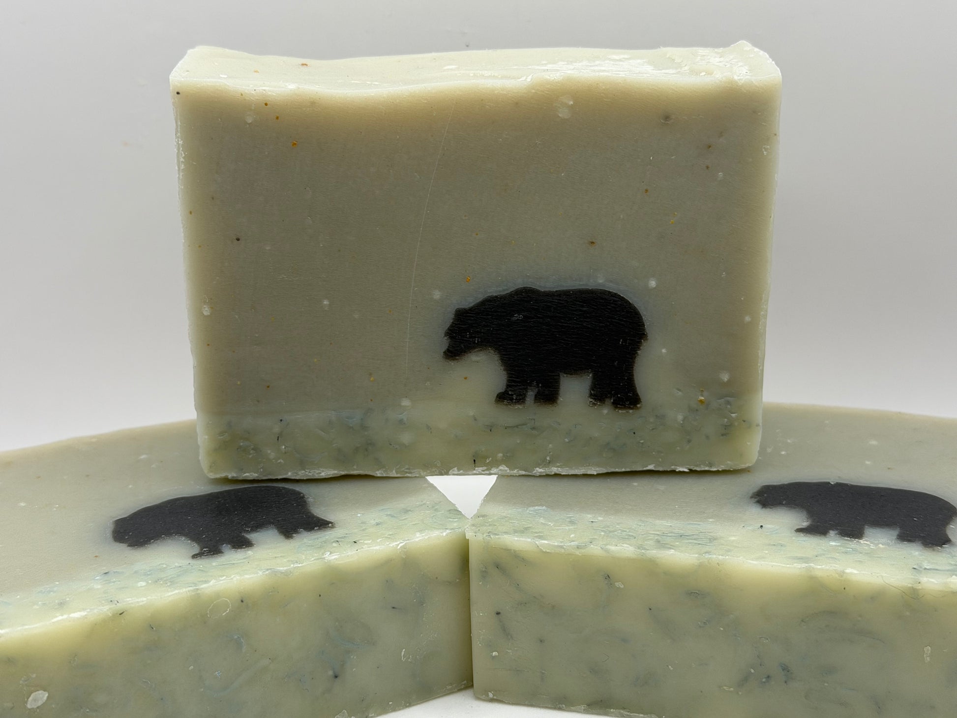Wander through a fresh green meadow with a friendly black bear in tow! “The Bear Necessities” soap bar is packed with nourishing olive oil, creamy shea butter, and gentle coconut oil to keep your skin soft and happy. The lively scents of peppermint, lavender, pine, cypress, and juniper fill your daily routine with a fun, festive forest vibe. Cleanse your skin and your spirit with this playful holiday treat!