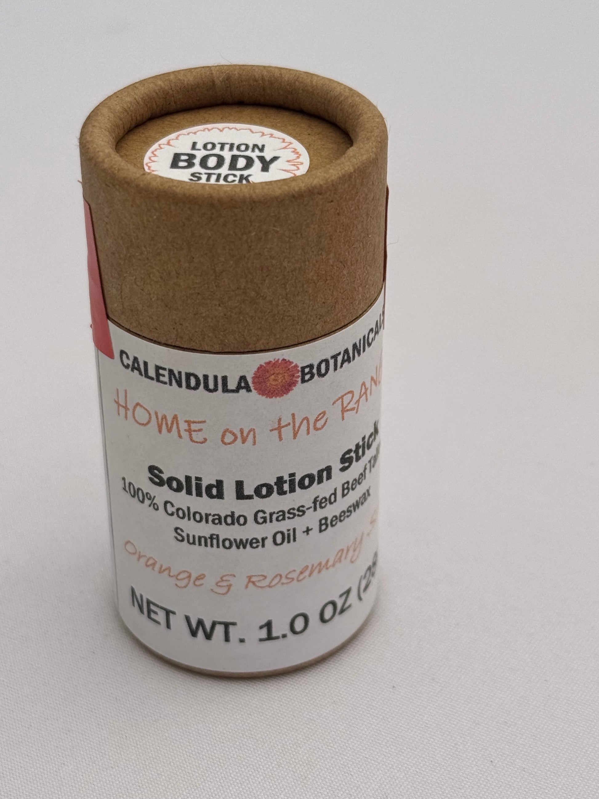 Ingredients: Colorado Beef Tallow, Hi Oleic Sunflower Oil, Beeswax. Orange and Rosemary Oils (for scented version).